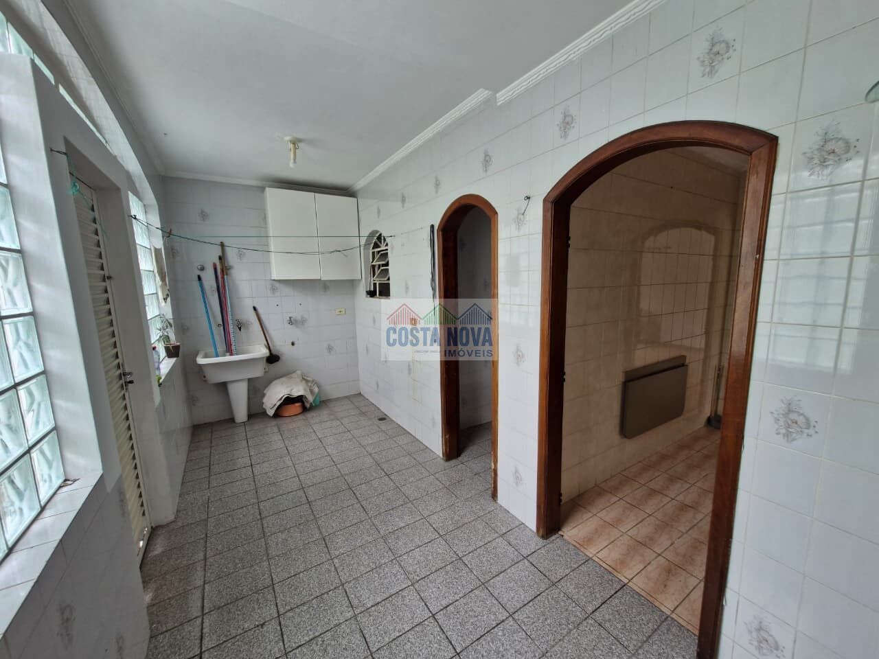 Área de serviço de grande porte com quintal para estender roupas;