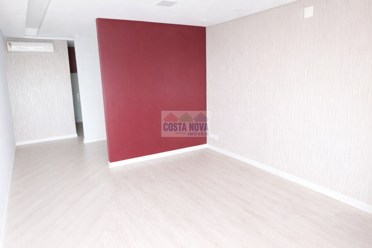 O imóvel conta com ambiente amplo e versátil, ideal para escritórios, consultórios ou empresas que buscam um espaço moderno e funcional. Possui piso em porcelanato/laminado claro, paredes com acabamento contemporâneo e destaque para a parede em tom vermelho, que agrega personalidade ao ambiente.